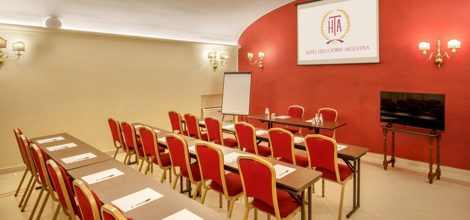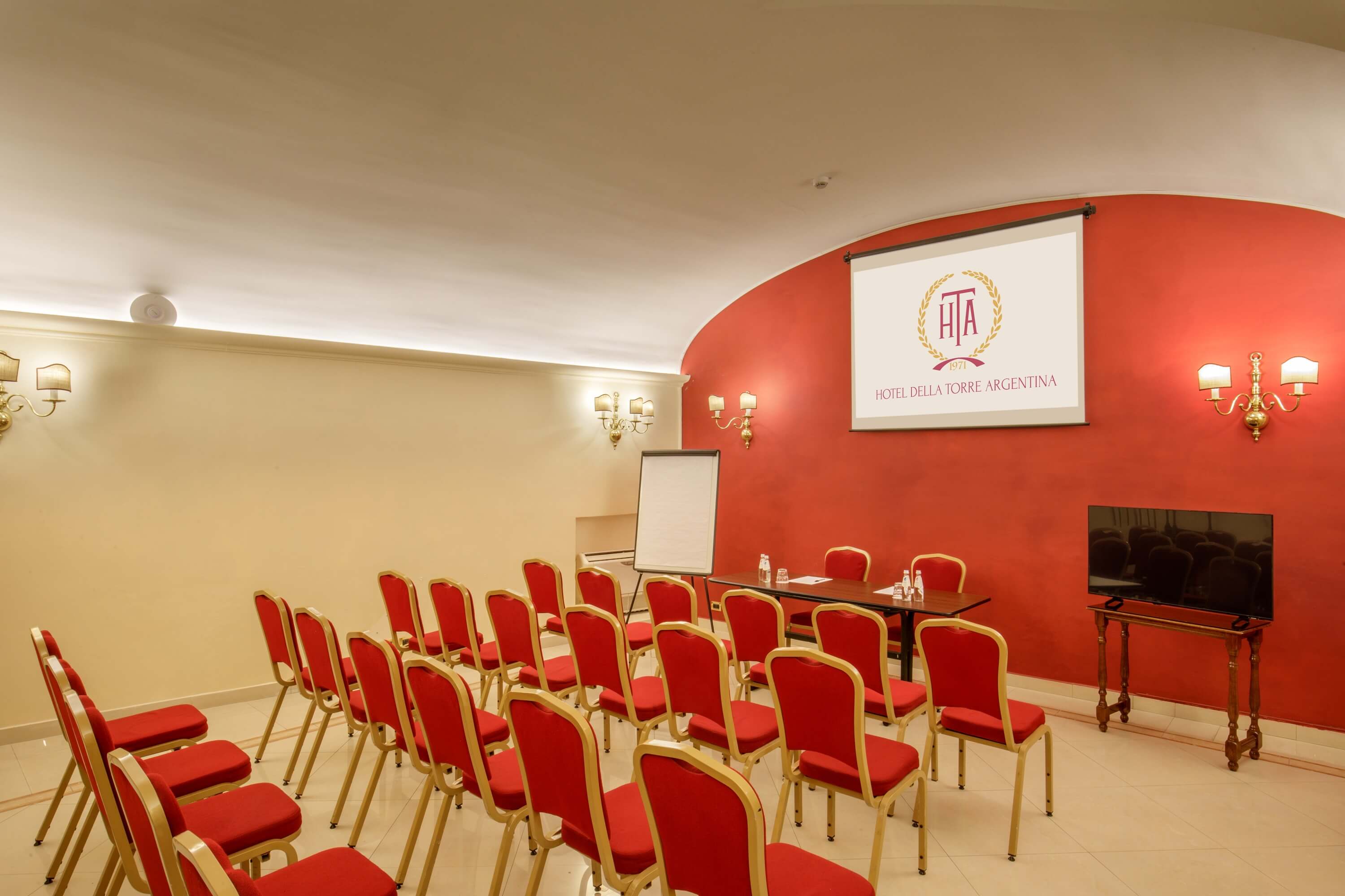 L'Hotel della Torre Argentina include una meeting room di 38mq che accoglie un massimo di 25 partecipanti, ed è coperta da connessione Wi-Fi ad alta velocità gratuita.