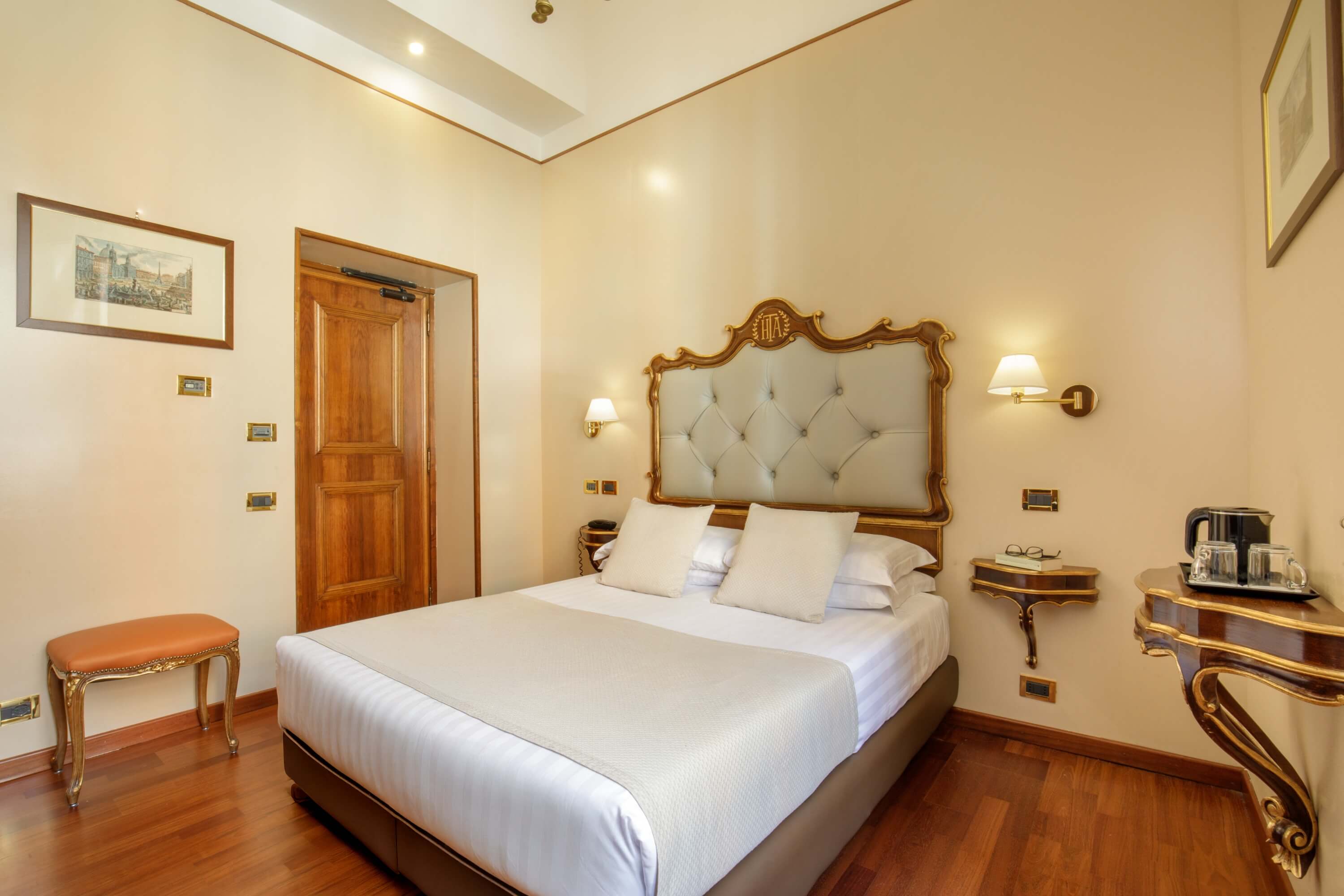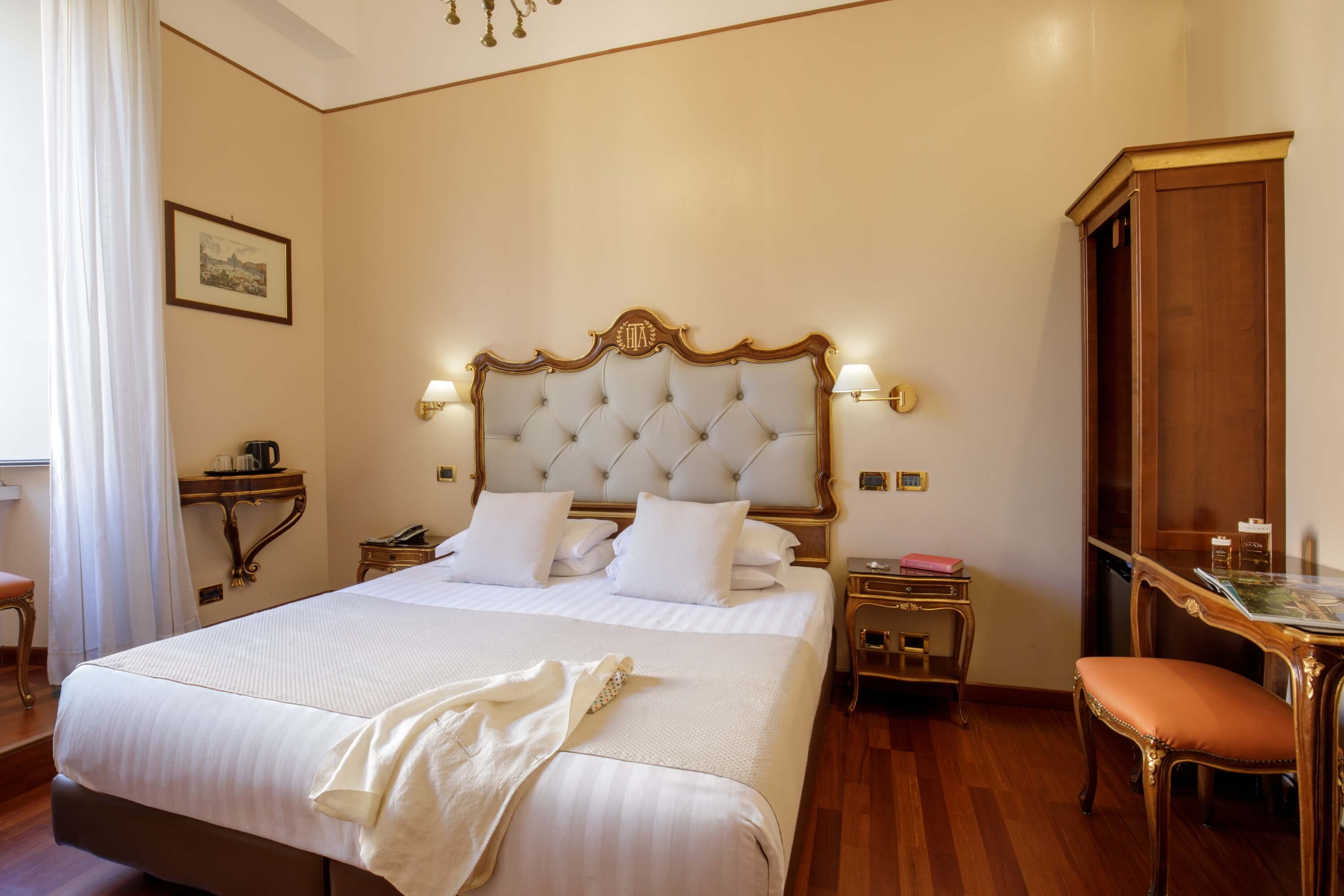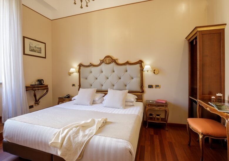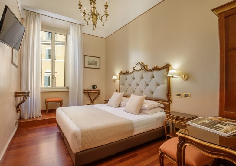 Our cosy 15  Small Double room for two people offers a classic décor. It features air conditioning and a flat-screen LCD TV, soundproofing, free high-speed Wi-Fi, a safe, minibar and a comfortable desk. The private bathroom features a bathtub/shower, hairdryer and dispensers (shower/shampoo and hand soap).